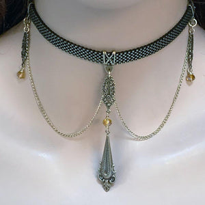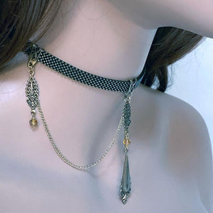 This handmade Gothic Victorian chain ribbon choker is quite a statement. Dainty yet so dramatic. I've used a chain ribbon as the base and added a few Gothic Victorian elements to add a bit of romance to this piece.