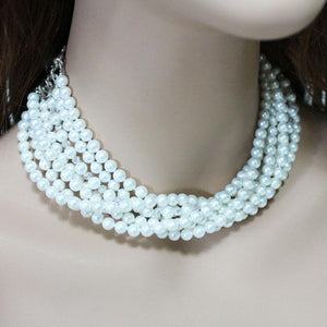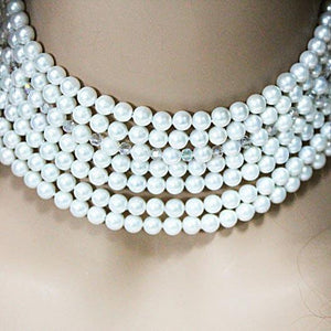 This pearl choker is a show stopper! Seven glorious strands of 6mm white mother of pearl shell beads come together to form this very versatile statement necklace. On the third row of pearls, I have added a bit of sparkle with 4mm clear crystals with the pearls. The necklace measures 13" with a 6" extension so that you can wear it many ways. Wear it close to the neck as a choker, or lower as a necklace, or even twist it for a totally different look. Either way, it looks stunning! Great for brides or for any special occasion.