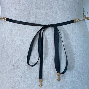 2 x 18 1/2" of ¼” narrow black satin ribbon complete with crystal bead finished ends or lobster claw clasp and 2" extension chain complete with wire wrapped crystal bead