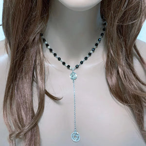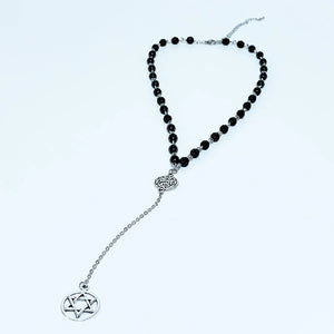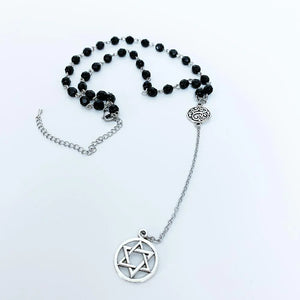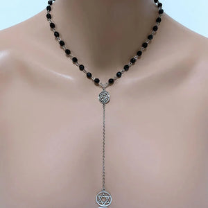 This black beaded star of David Y necklace is handmade and eye-catching, perfect for making a statement. Here are the details at a glance: