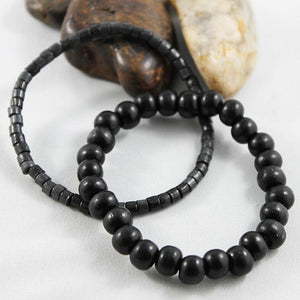 Wear this simple black wooden bead stretch bracelet alone or with other bracelets. Great look for both men and women!