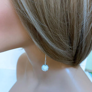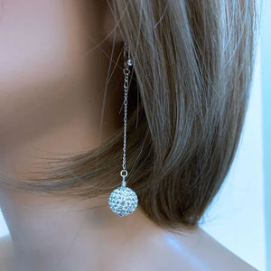 • Dangling from the sterling silver lever back hook is a lovely sterling silver figaro chain with 12mm pave crystal bead. Simple and elegant for any bride on her special day or any special occasion!  Approximately 3" from the top of the lever back hook to the bottom of the pave ball. (Sold as a pair.)