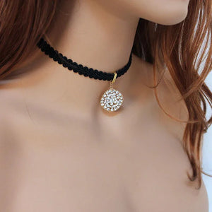 Show off your sexy back with this beaded backdrop choker necklace. Lovely narrow detailed black ribbon measures approximately 12" plus a 2" gold tone extension and has a long black crystal beaded backdrop consisting of a 9" chain with black crystals & wire wrapped black crystal teardrop. With a sparkly 25 mm wavy round rhinestone pendant front and center, this choker necklace is great for any special occasion.