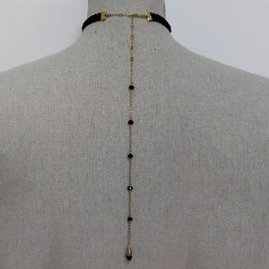 Elegant Black Long Beaded Back Drop Choker Necklace - perfect evening jewellery!