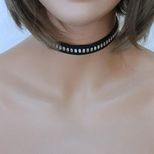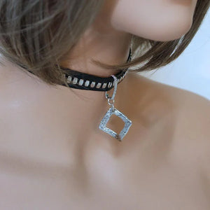• This black faux leather choker is soft and comfortable to wear. Sexy look for a night on the town! Available with or without pendant. *Note: If you want it without the pendant, consider ordering the large wide round or square option as these two versions allow for the pendant to be easily removed. Two looks, one choker! (The large narrow round pendant version can only be worn with the pendant) Details at a glance: