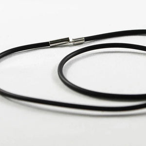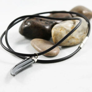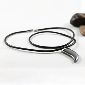 With a 1.25" shiny grey horn pendant as the focal, this men's black rubber cord necklace is great for every day! Measures 19"