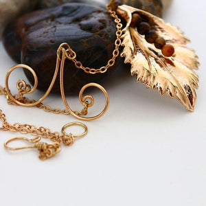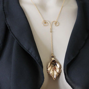 This handmade gold leaf Y necklace is great for fall! Flaunt it with a deep V cut top or wear it with a turtle neck - either way, it looks great!