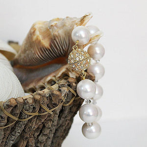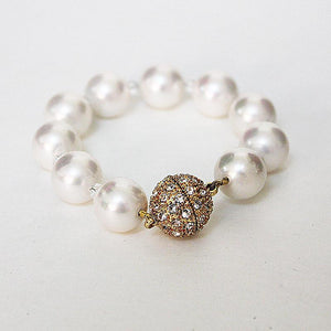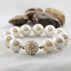 Elegance at an affordable price! The lustre of these large 14mm mother of pearl shell beads is fabulous. With tiny crystal beads and a beautiful gold-tone crystal magnetic clasp, this beauty will dress up any outfit!