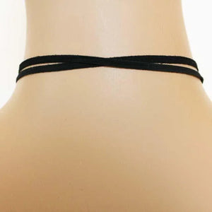 This open necklace can be wrapped and tied around your neck choker style, around your wrist as a bracelet or even around your upper arm as a band. So versatile! The rose gold rhinestone ankh connector is the focal to this choker. I have added a few gold-tone beads and spikes to each end of the black suede to give a bit of edge to this lariat style necklace. Approximately 35" long tie to close.