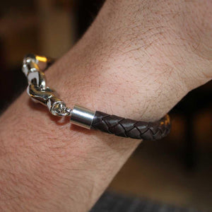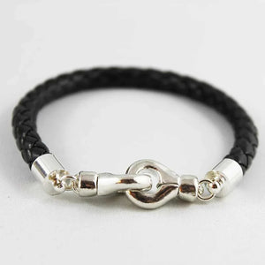 This is a great leather bracelet for men! 8mm braided black leather cord with silver-plated magnetic claw clasp.