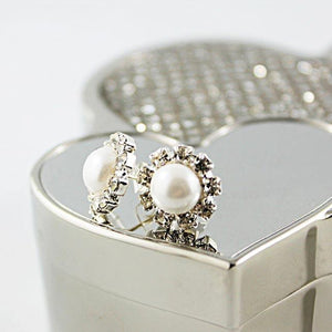 These post earrings are so simple and elegant and are perfect worn alone or with your favourite necklace. A 7mm creamy white half pearl is embedded within an 11mm rhinestone frame. Great for any bride on her special day or as a bridesmaid's gift idea. Better yet why not a special treat for yourself? Note: These earrings are silver plated. If you have sensitive skin, you may want to check out the earrings sold here which have surgical steel posts and stainless steel butterfly clasps.