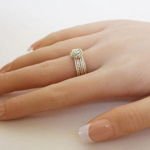 This wire-wrapped ring is made with non-tarnishing twisted wire. With a simple knot, this ring is both simple and elegant - perfect for any occasion!