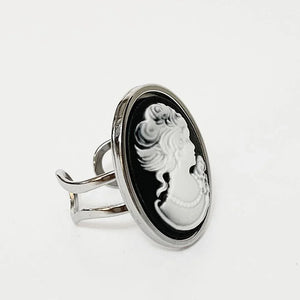 Victorian Black Cameo Silver Ring
