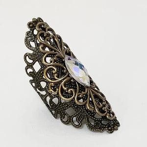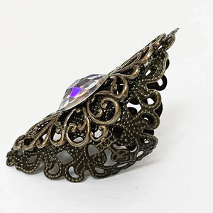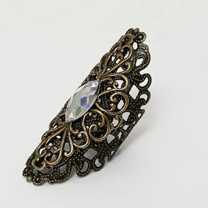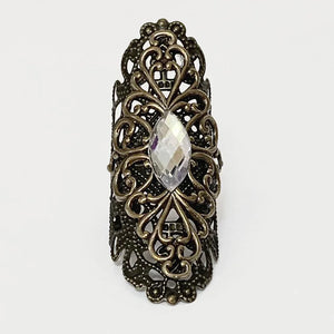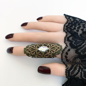 This Gothic Victorian full-finger wrap ring is adjustable to fit most finger sizes. Spans 2" long - a great look! Formed as size 7 however it's adjustable. Just gently squeeze the ring around your finger for a perfect fit.